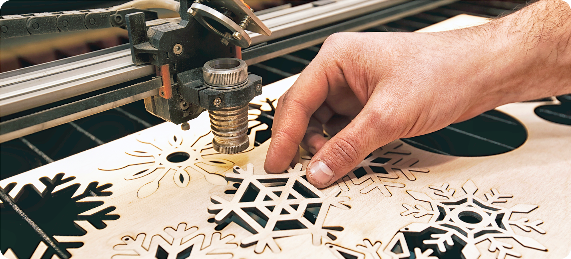 Лазерный луч становится высокоточным режущим инструментом, позволяя начинать рез в любой заданной точке. Компьютерное управление процессом раскроя создает условия для экономного расхода материала. Эта технология позволяет вырезать заготовки любой формы из фанеры.